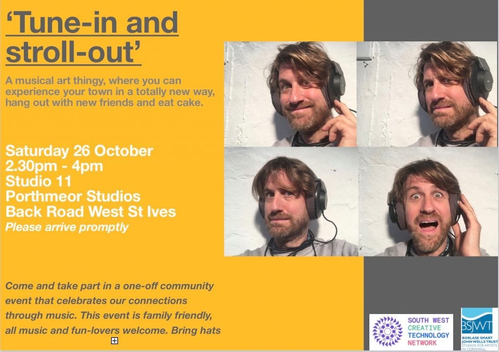 On the weekend, I brought my headphone piece of music which is the centre piece of my months work to a wonderful community project at St Ives orchard. On Sunday they held their autumn apple day, where many members of the local community had the chance to visit, pick apples, make pizza, drink cider and apple juice, make pizzas, hang out and meet and chat.